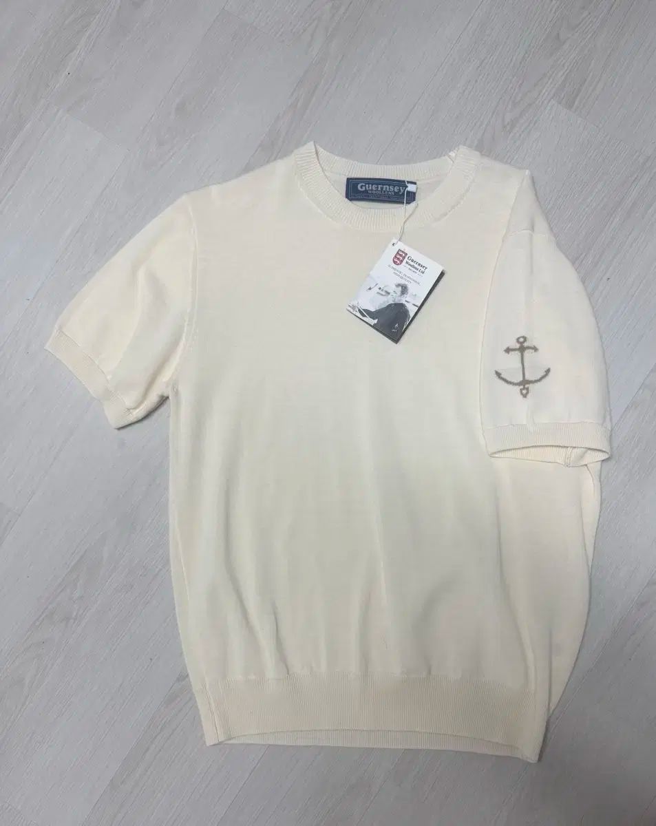 Guernsey Woollens ガンジーウーレンズ 半袖 ニット セーター エクル