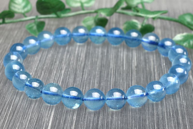 1点物 AAA 美しいブルー サンタマリアアクアマリン 7.5 mm ブレスレット パワーストーン 天然石 _U 7701