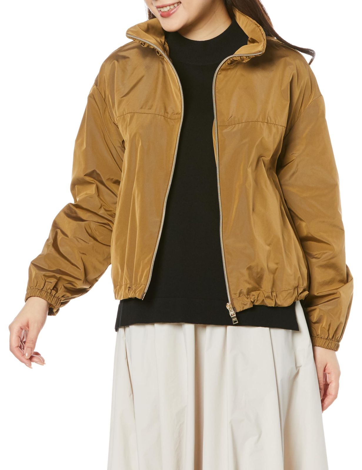 [ヘルノ] スタンドカラーブルゾン はっ水機能ポリエステルスタンドカラーZIPブルゾン レディース キャメル
