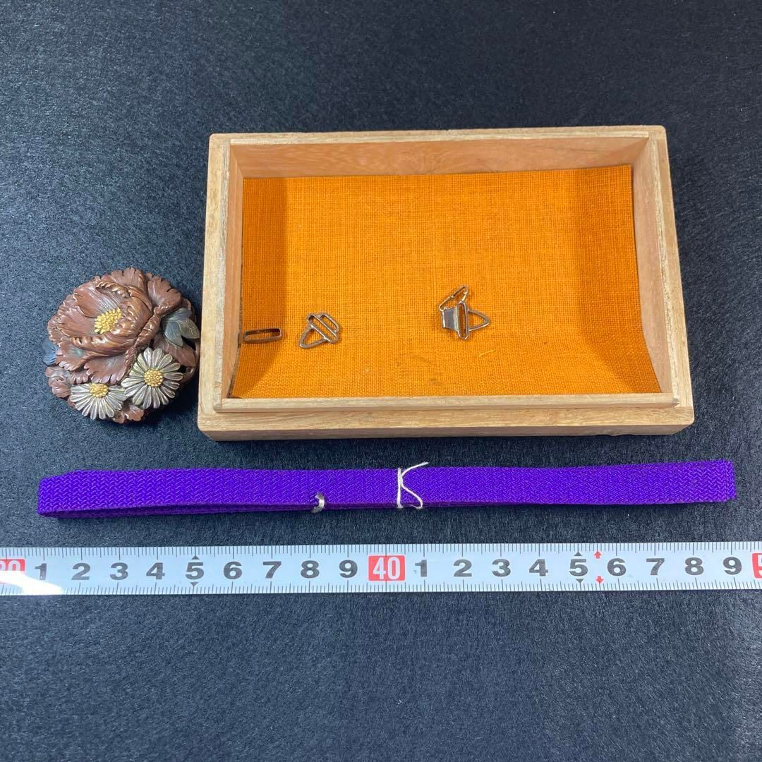 喜久在銘 上金工細工菊図帯留 蓋無木 36 g 東Y 5-0531 トヒウ