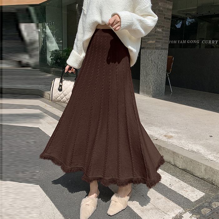 ニットスカート レディース ロングスカート ボトムス ハイウエスト ロング丈 女性 大人 秋冬 レディーススカート Aライン エレガント 柔らかい 通勤 着痩せ 優雅 体型カバー シンプル xkmilyx 145 DZ 20