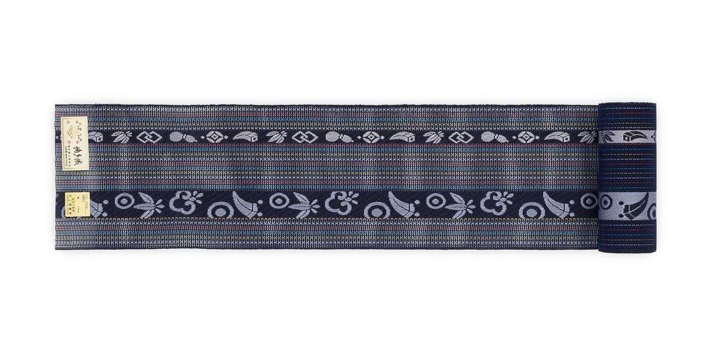 本場筑前博多織 紗四寸帯 濃紺 宝尽くし