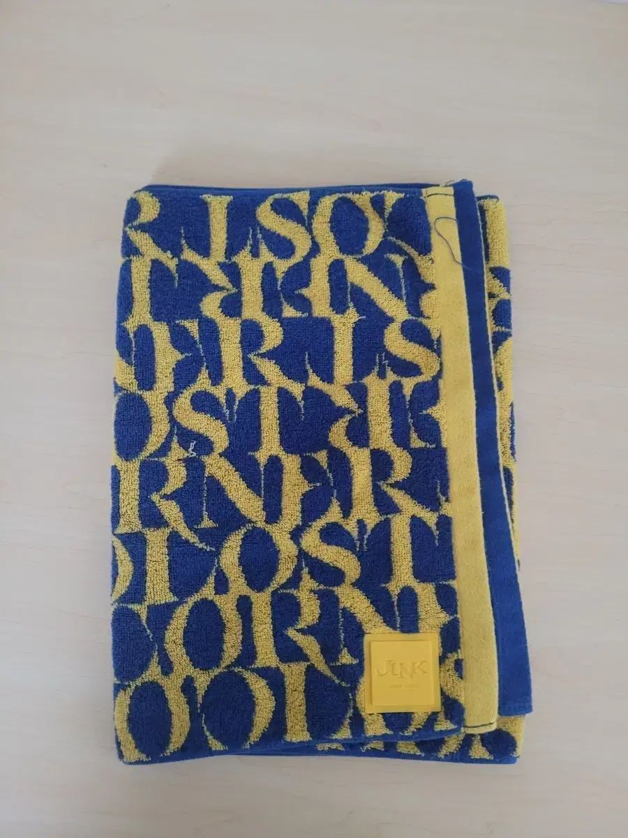 ブルー バターンに イェロー コメントが POINT인 タオルです。