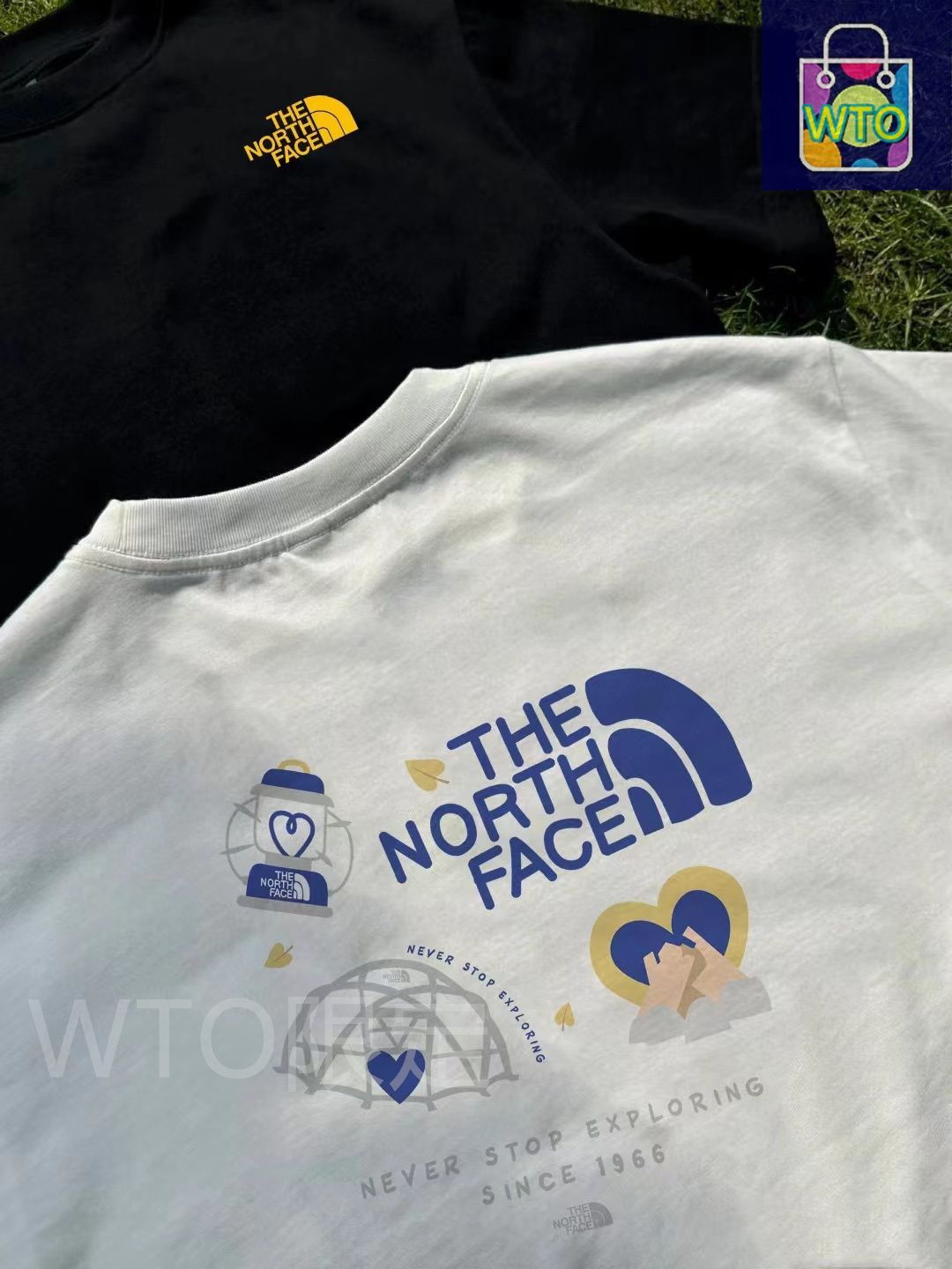 TNF ザ ノース フェイス とのコラボレーションモデル と同時期発売 前後ロゴ カップル用 男女兼用のプリント T シャツ WTO輸入1