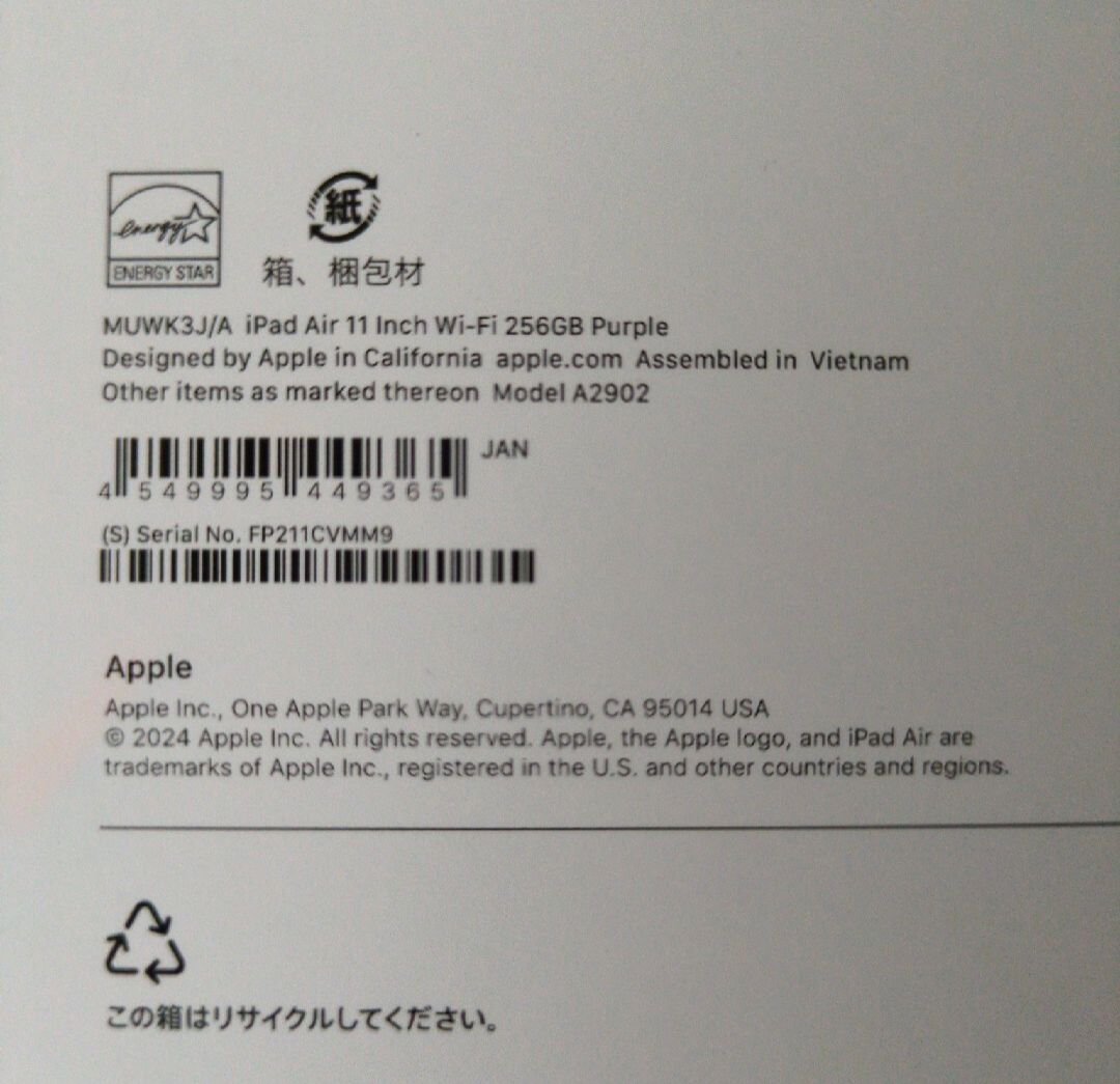 iPad Air 11インチ Wi-Fi 256GB パープル 2024年モデル