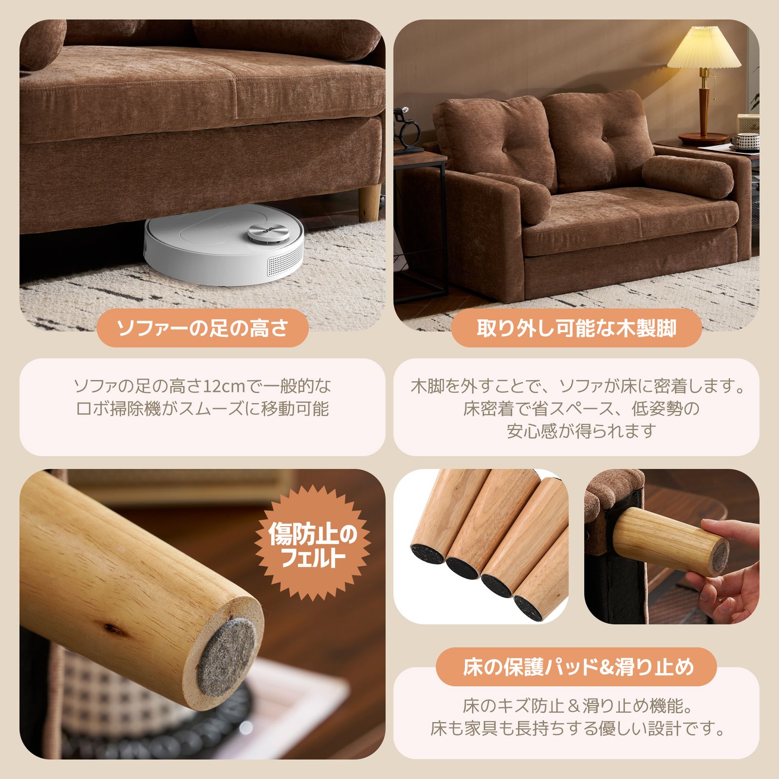 このソファは、座布団には厚みがあり、整?の高品質海綿を使用しています。そのため、しっかりとした弾力性があり、座る際にも優れたサポートを感じることができます。長時間座っていても疲れにくく、快適な座り心地を提供します。また、海綿の回復力も優れているため、長期間の使用でも形が崩れにくく、いつまでも快適な座り心地を保ちます。