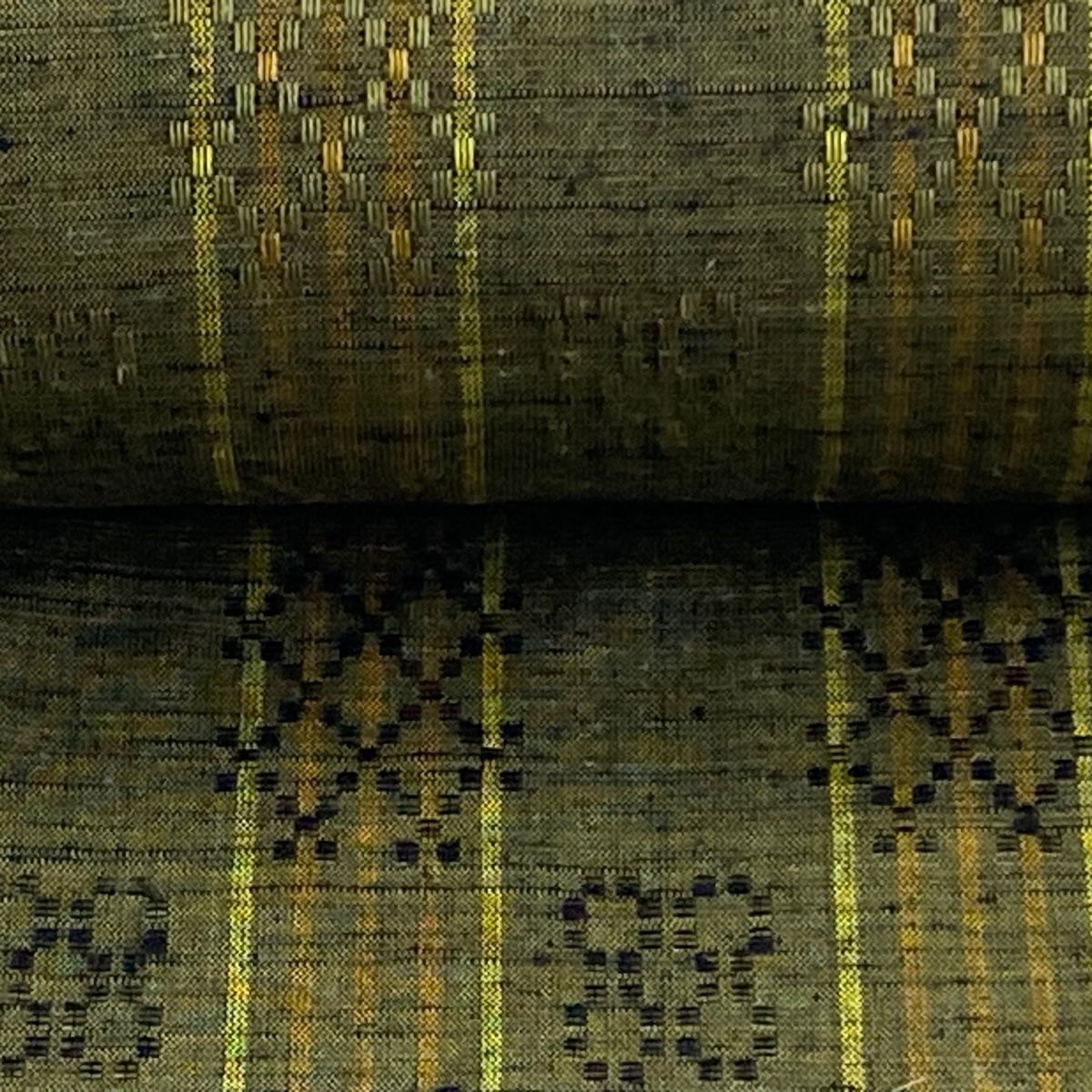 反物 秀品 紬 証紙 縞 幾何学 花織 茶緑色 正絹