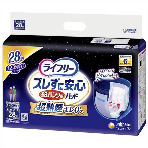■【商品内訳】:ライフリーズレずに安心紙パンツ尿とりパッド夜用6回28枚×3点セット
