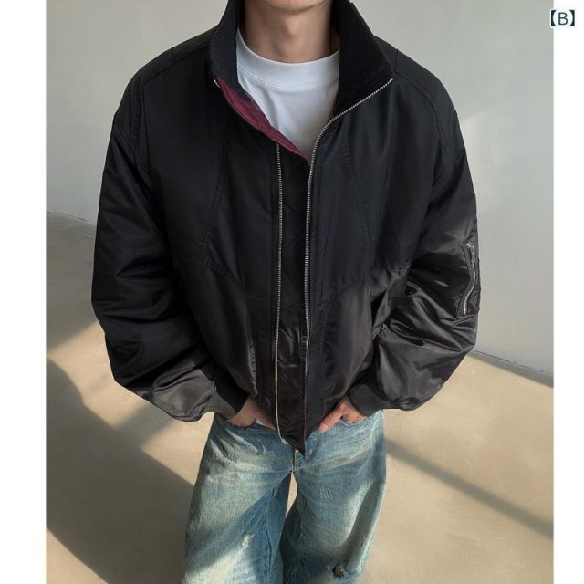 M 6 春 コーデ メンズ 用 服 シンプル ファッション オシャレ 大人 かっこいい 大きいサイズ ストリート 紳士服 アメリカン フライト ジャケット 綿入り クリーン フィット スタンド