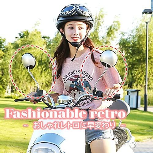 丸形ミラーを取り付けると愛車が一気に“おしゃれレトロ”に早変わり。直径約11cmで視界も広く良好です
