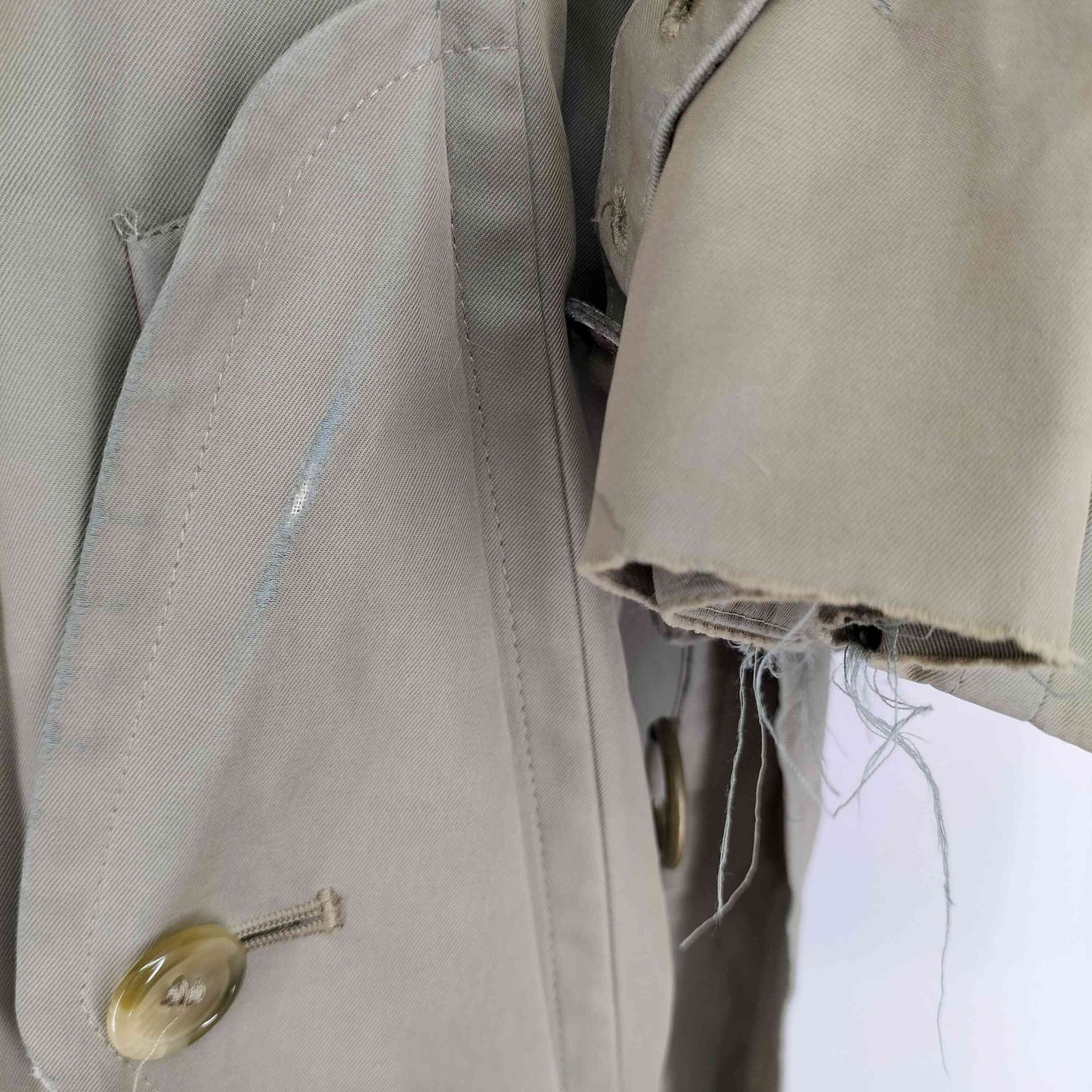 【状態詳細】襟、袖口、裾口、ポケット付近に破れ等によるダメージがございます。