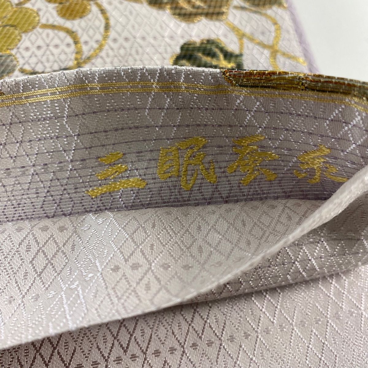 袋帯 秀品 三民蚕糸 リス 葡萄 金銀糸 箔 薄紫 六通 正絹