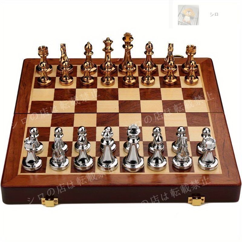 ゲームボード チェスセット 折り畳み エレガント 駒 亜鉛合金製 収納 おしゃれ 盤 無垢材 木製 持ち運び チェス ゴールド シルバー xz