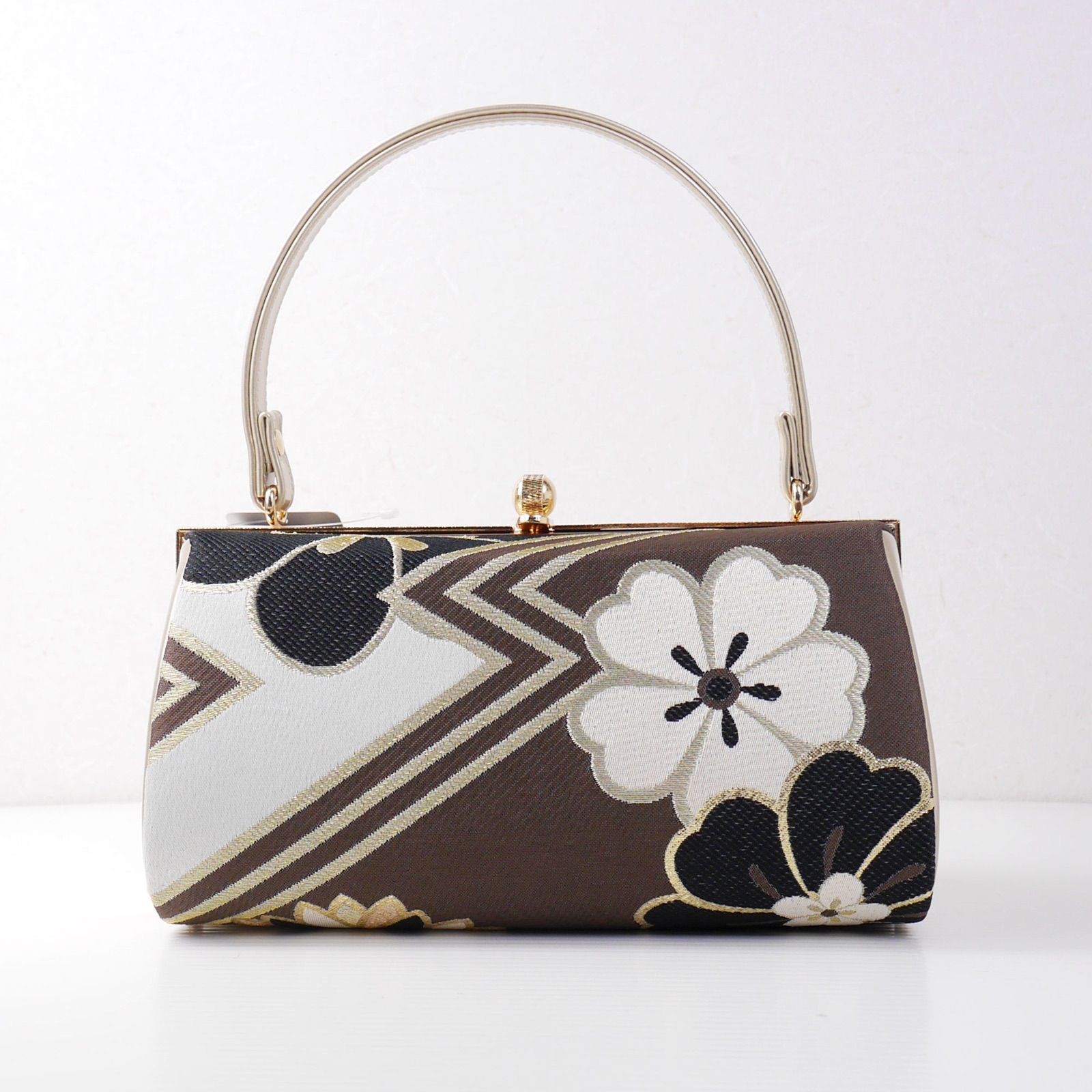 草履バックセット ブラウン 桜 梅 金 ゴールド くすみ 芯 成人式 卒業式 ゾーリバック 帯地 厚底草履 U 94-6