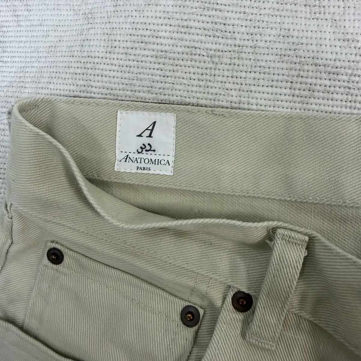 ANATOMICA(アナトミカ)のベージュ色 11618 B ドリル ストーンです。サイズは 32 で、全体的にスタイリッシュなコンディション維持しています。実寸はThe First 写真参考 부탁드립니다。