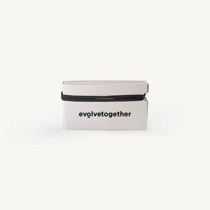 30枚のブラックマスクと3枚のevolvetogether持続可能なマスクキーパーが付属しており、外出先での保管用の財布やハンドバッグにぴったりのポケットサイズ。