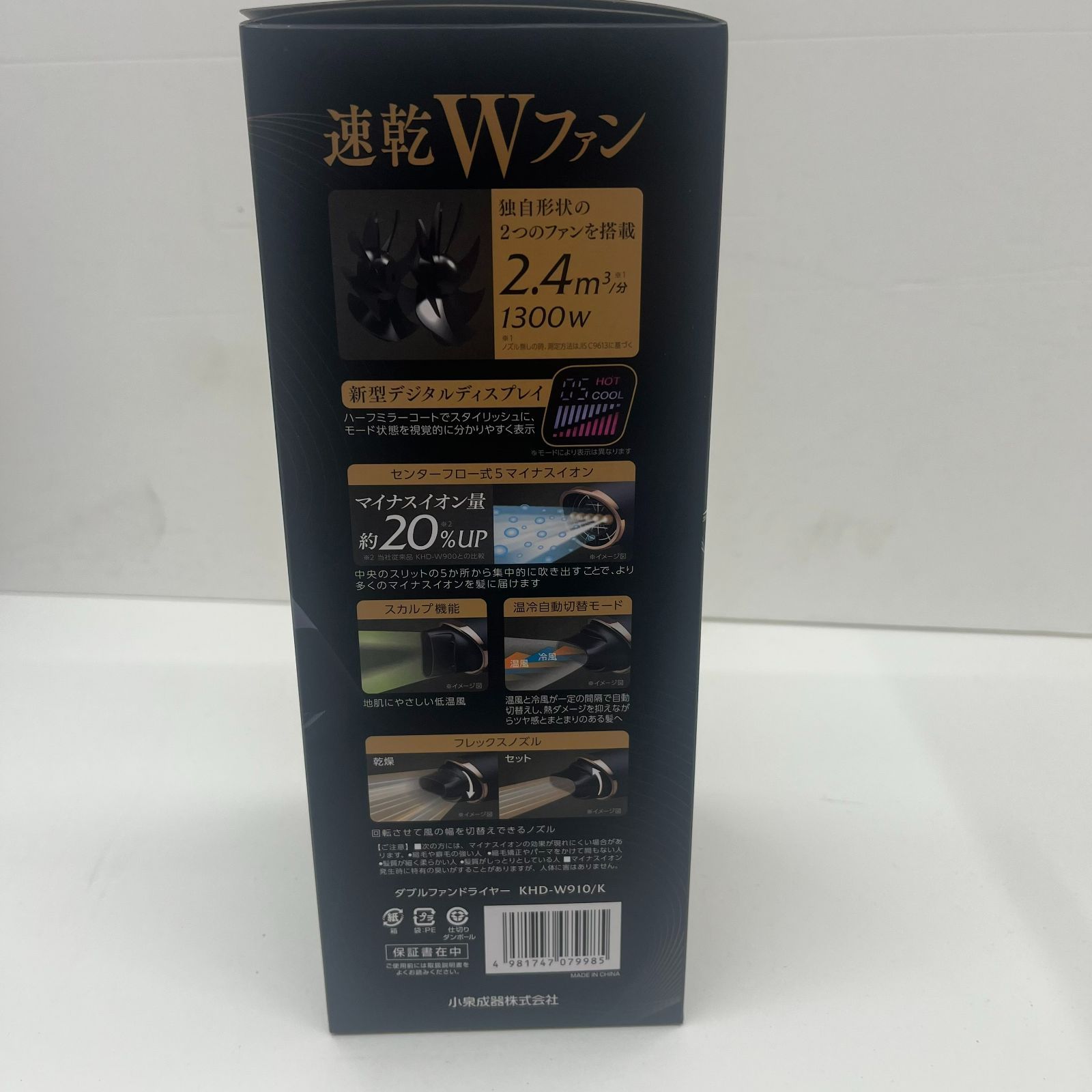 コイズミ KOIZUMI モンスター ダブルファンドライヤー 大風量2.4 m 3 分 温冷自動切替 スカルプモード フレックスノズル デジタルディスプレイ 着脱式フィルター 1300 W ブラック でんきち