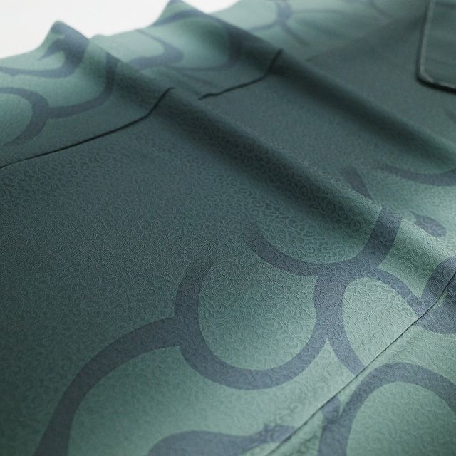 モダンな地紋が施された天鵞絨(びろうど)色地に、アンティークグリーンのぼかしが美しく映える一枚。