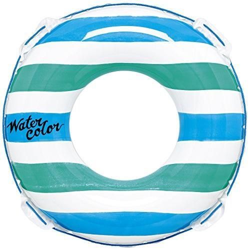 膨らんだ状態の浮輪の内周が約130~135センチとかなり大きめな浮輪です。大人1人がゆったりと入れる大きさです。かんたん空気栓装着商品。ロープ付