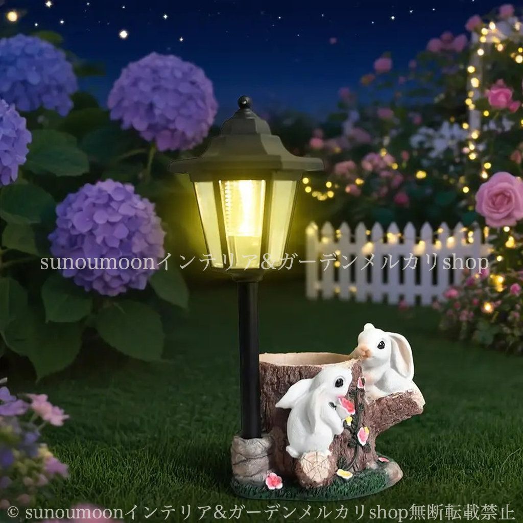 ソーラーライト ガーデンインテリア ガーデン雑貨 ガーデン プランター 雑貨 ウサギ お洒落 太陽光 ガーデニング おしゃれ 庭の装飾 植木鉢 切り株 うさぎ インテリア ラビット アニマル 樹脂 兎 4-7
