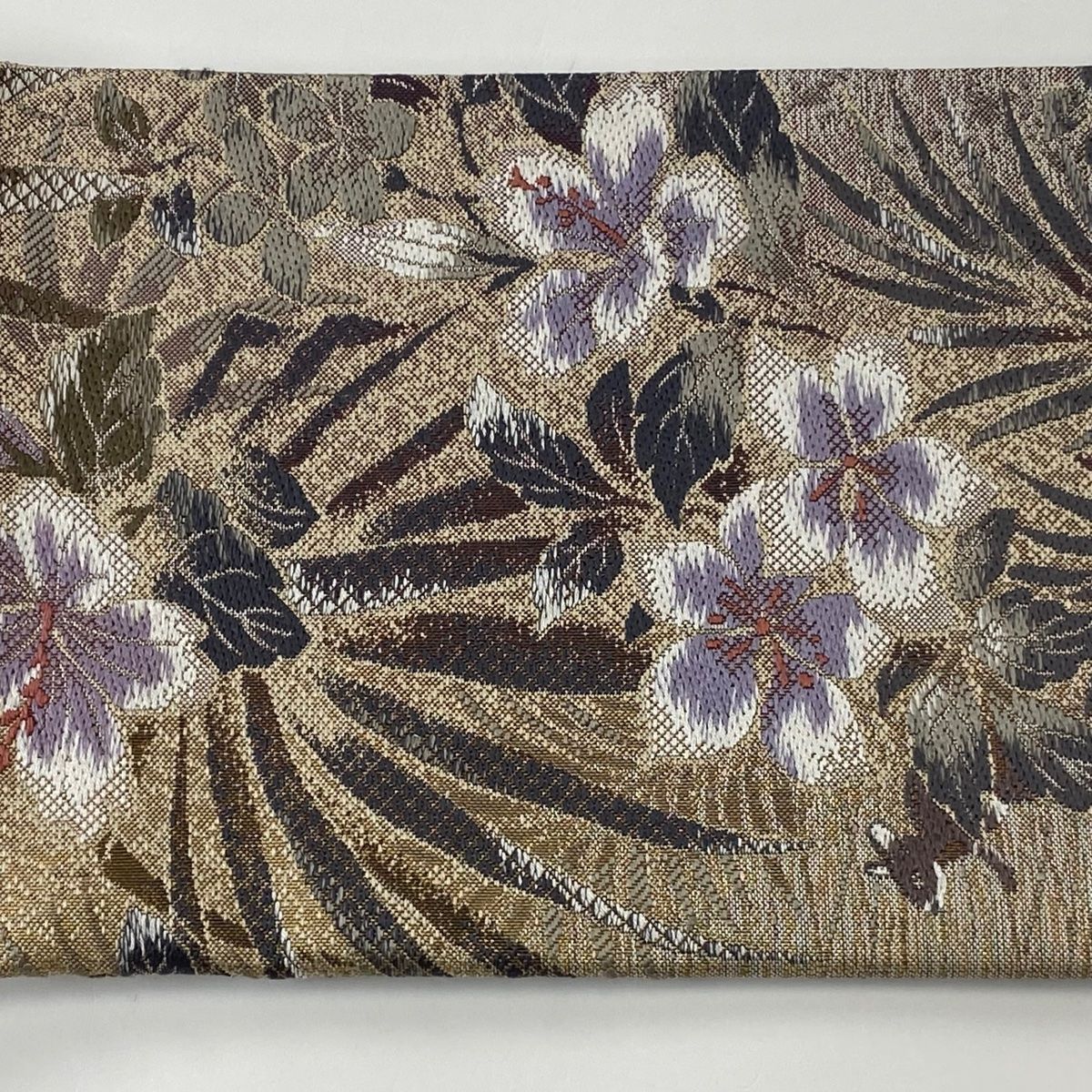 付け帯 秀品 作り帯 やまと 草花 鳥 刺繍 箔 薄茶色 正絹