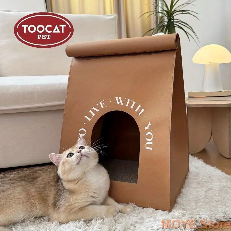 キャットハウス ユニーク テイクアウトバッグ 紙袋風 室内用 猫ハウス ペットハウス かわいい 個性的 丈夫 長持ち 耐久性 クラフトペーパー インテリア 春 夏 秋 冬 オールシーズン ペット用品 猫用 小型猫 中型猫 大型猫