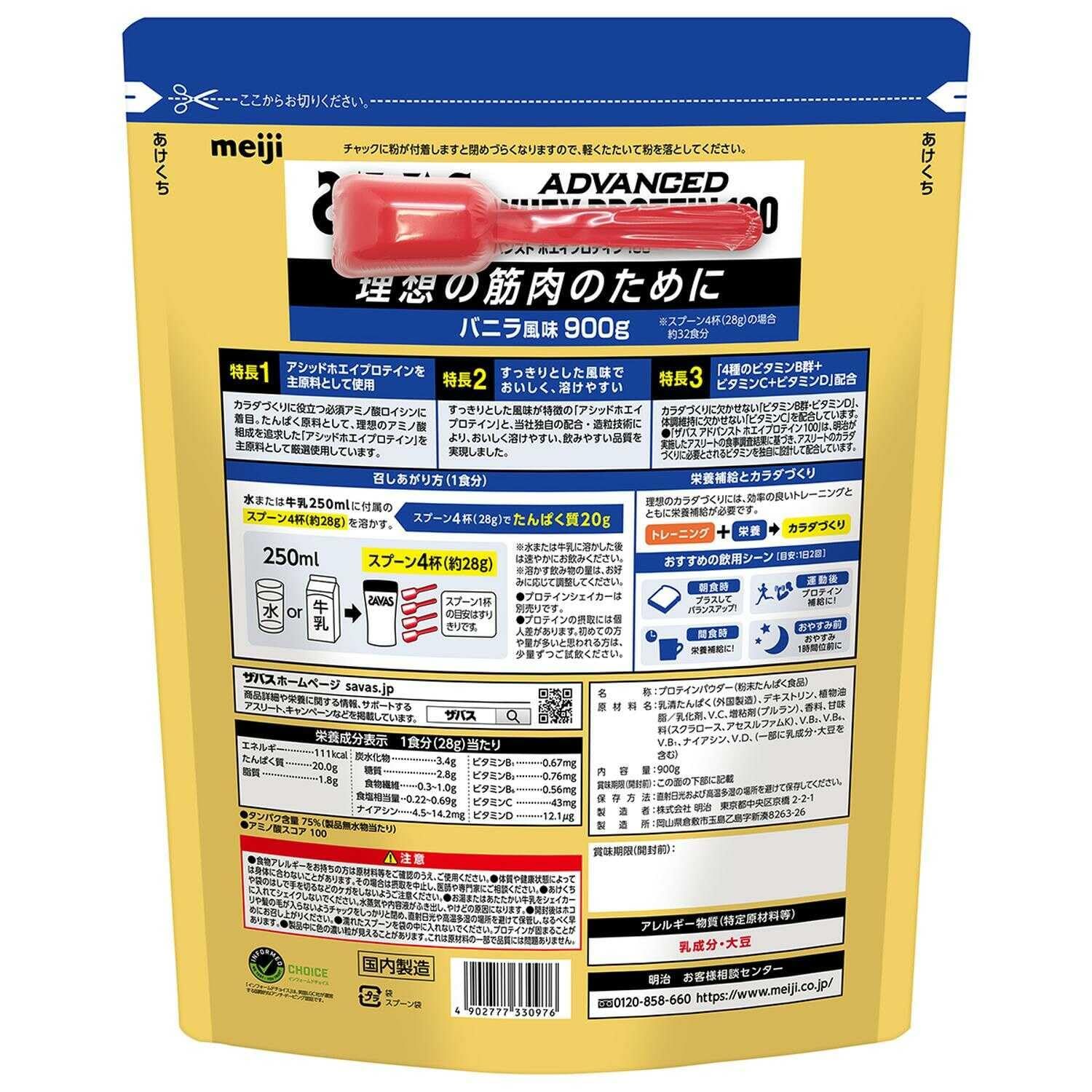 明治 ザバス アドバンスト ホエイプロテイン100 バニラ味 900 g セット