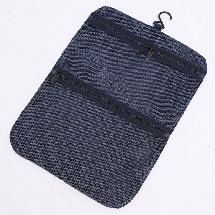 ・通気性がよく視認性に優れたメッシュのポケット(上部にファスナーポケット×2、下部にファスナーポケット×1)をレイアウトした、吊り下げフック付きのインナーボードを付属。