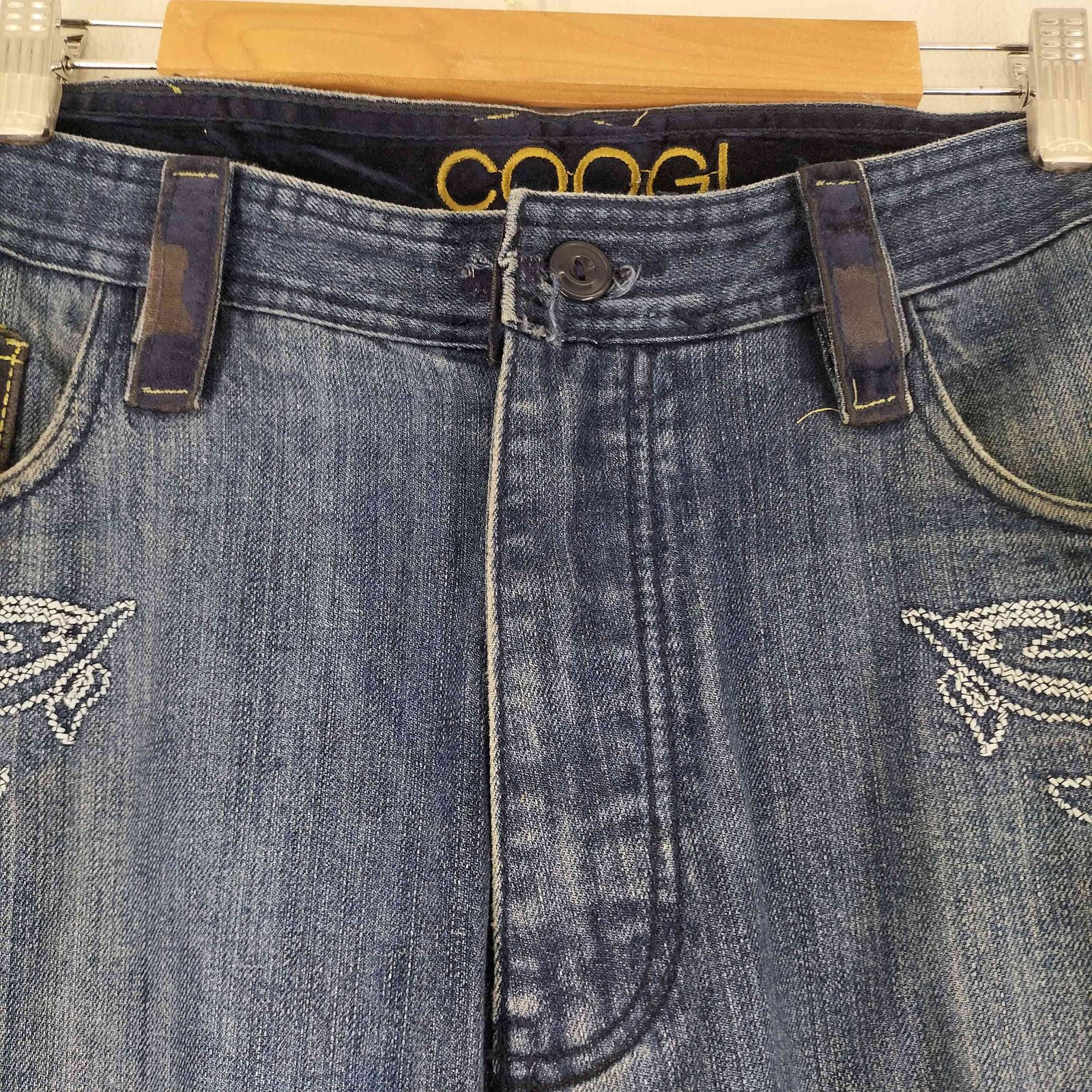 クージー COOGI 90-00 S ベロアパッチワーク刺繍デザインデニムパンツ メンズ 38|34