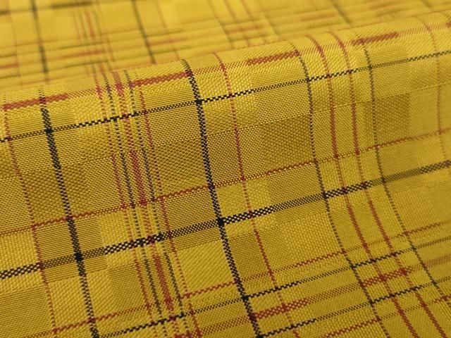平和屋着物 黄八丈 変わり格子 正絹 ps