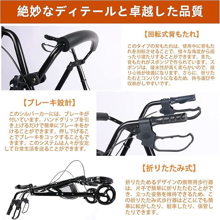 Care-parents シルバーカー 手押し車 座れる 軽量 おしゃれ アルミ製 折りたたみ 高さ調節可 四輪歩行器 ブレーキ付き CP-1004 D ブラック