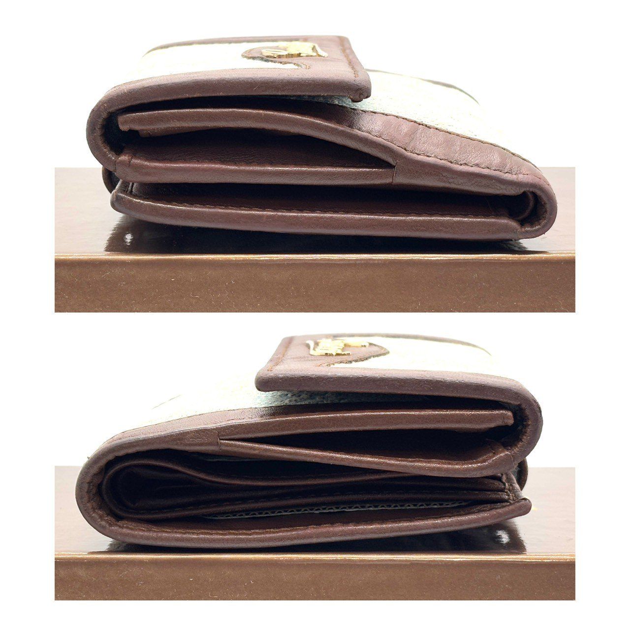 ノスタルジックな艶めき GUCCI グッチ 二つ折り財布 GGデニム 筆記体ロゴ Wホック Y 2 K レザー×キャンバス ブルー ブラウン