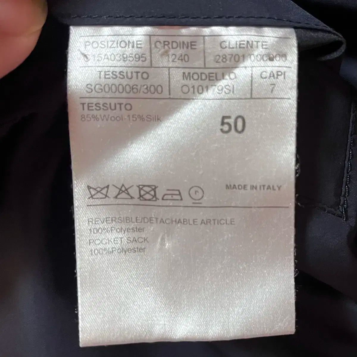 シルクとウールの混紡素材を使用したメインサイドは、すっきりとした光沢感とドレープ感があります。