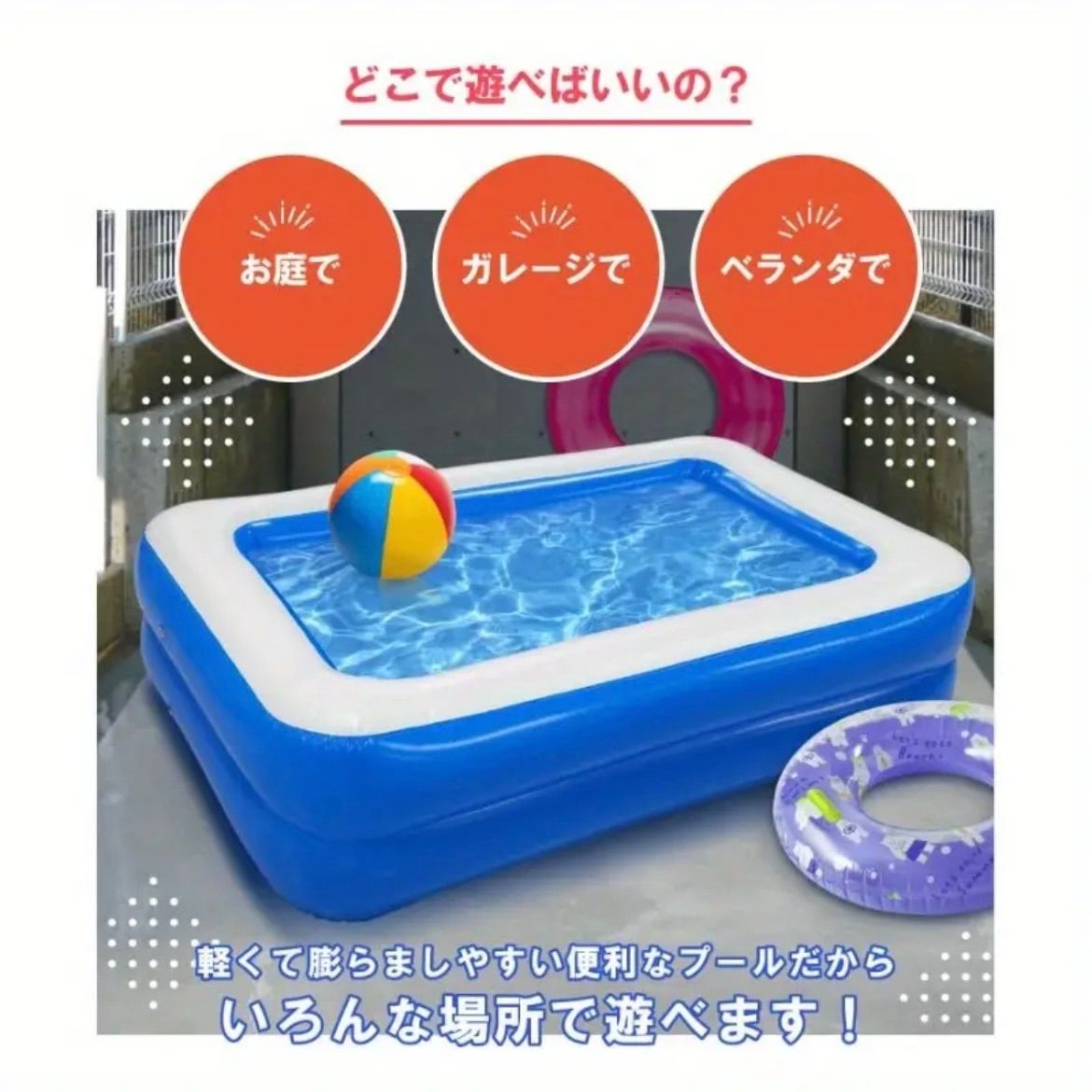 『自宅の庭で手軽にリゾート気分が楽しめる、18歳以上向けの長方形ビニールプール。