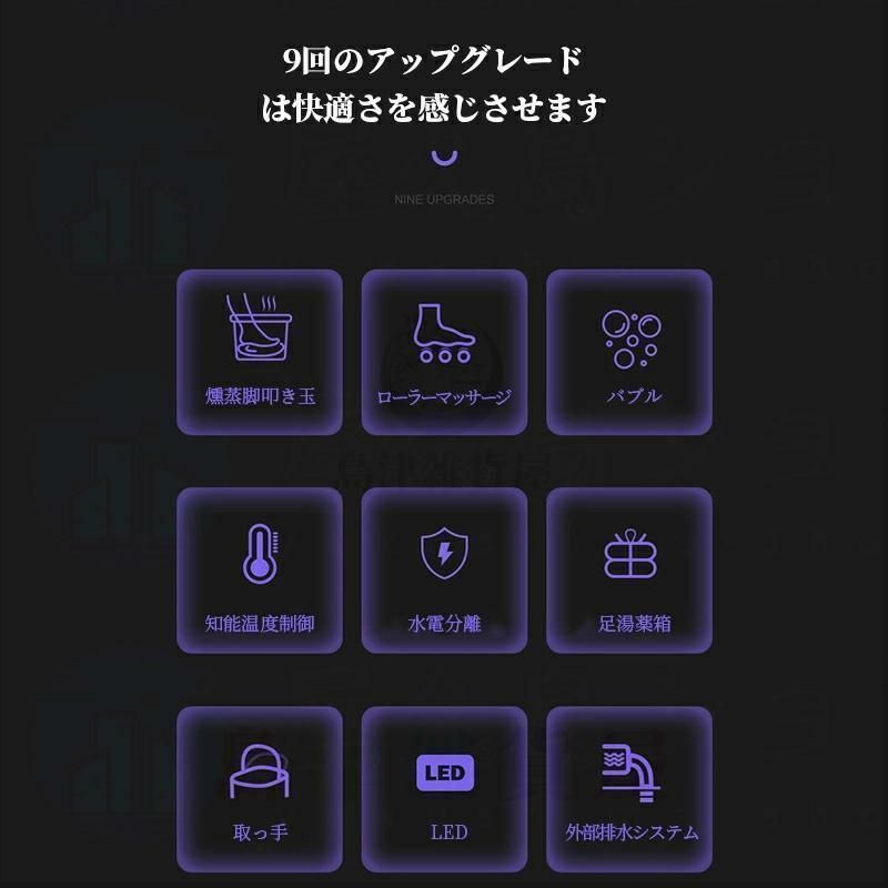 製品機能:スクレーピングホイール、活性酸素気泡、くん蒸、恒温フットバス