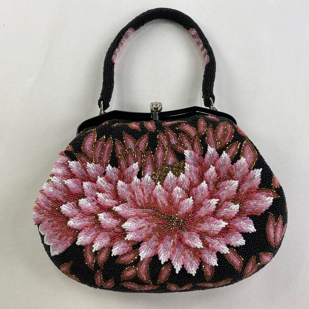 和装バッグ ビーズバッグ フォーマル 草花 黒 ビーズ 和装小物