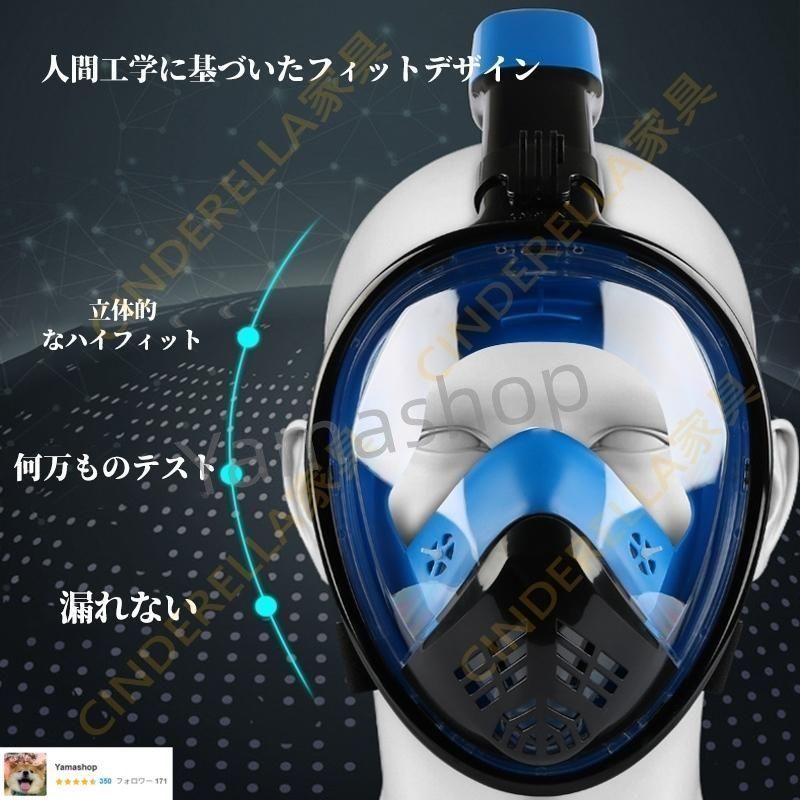 【防曇デザイン 浸水対策】:曇を有効に防ぐために、息を吸い込むチャンネルが、吐き出すチャンネルと違うので、クリアな視界を実現できます。浸水防止のコツは、顔とシュノーケルマスクの間に隙間があるかどうか、ご確認してから、ヘッドバンドを調整して、スカートを顔にしっかりに当ててください。顎に排水弁があり、もしマスクに浸水したら、頭を水面の上に出してください。