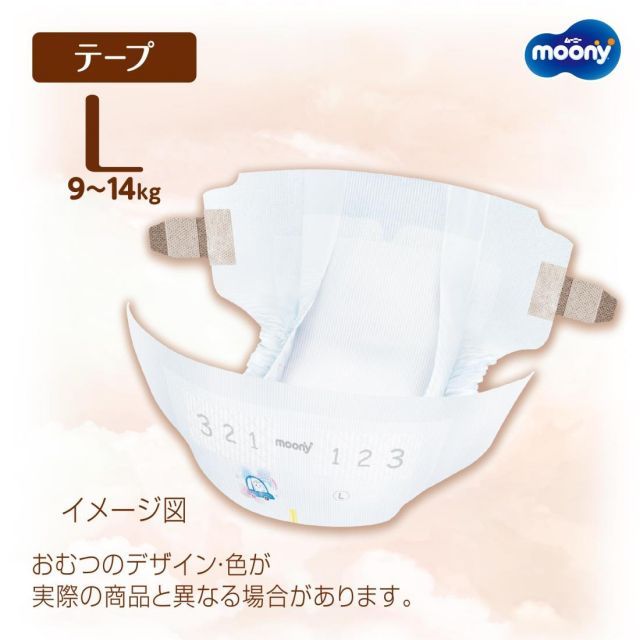 サイズ:Lサイズ(152枚)◆商品名:【テープLサイズ】ナチュラルムーニーオーガニックコットンオムツ(9~14kg)152枚(38枚×4)ケース品