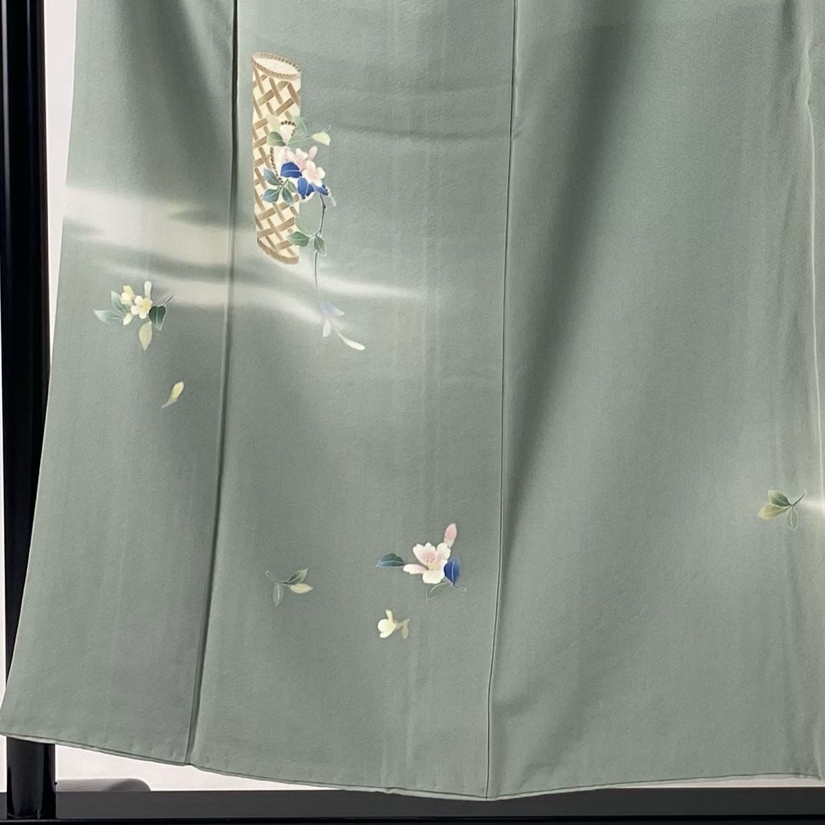付下げ 身丈152.5 cm 裄丈62 S 袷 南克治 落款 花器 霞 ぼかし 灰緑 正絹