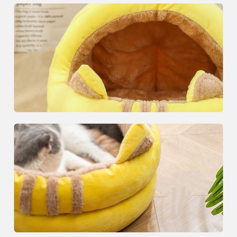 猫 犬 ベッド ペットベッド ふわふわ 暖か もこもこ キャット ペット用品 ペットハウス 滑り止め クッション 柔らかい 秋冬 イエロー Lサイズ xzdsdwb