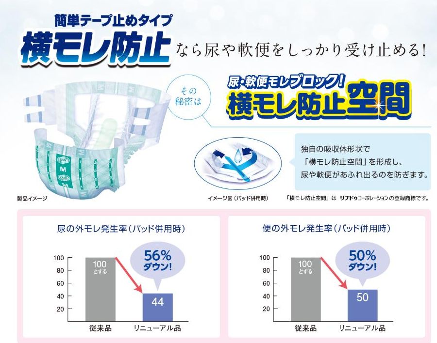 横もれ防止空間で尿・軟便をしっかり受け止めるので、寝て過ごす方に最適‼