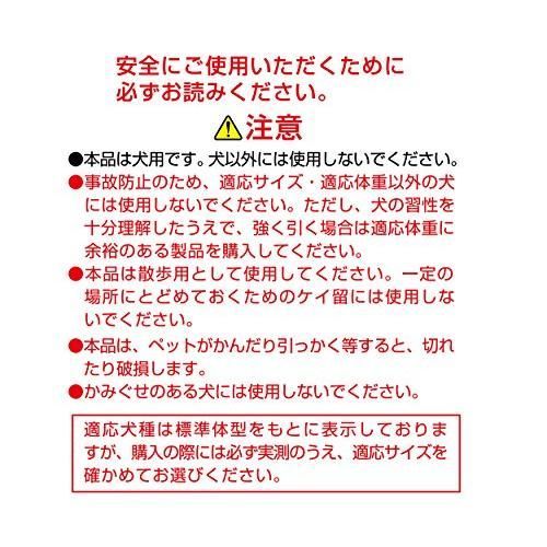 商品紹介 落ち着いた色をベースに、ワンポイントで+αのオシャレを。従来のものと編み方を変えることで、手触りの良さとやわらかさをプラス。編み込まれた反射材で夜のお散歩も安心です。反射の量も増えました。突然のスナップ外れを防止する横スライドレバー構造のP.S.S(ペティオセーフティスナップ)採用! ! 使用上の注意 ●火気や水気のそば・直射日光・高温多湿の場所をさけて保管してください。●幼児・子供・ペットのふれない所に保管してください。 原材料・成分 ポリプロピレン 使用方法 ※適応犬種は標準体型をもとに表示しておりますが、購入の際には必ずワンちゃんを実測のうえ、適応サイズを確かめてお選びください。散歩用として使用してください。一定の場所にとどめておくためのケイ留には使用しないでください。 ご注意(免責)>必ずお読みください ●犬以外には使用しないでください。●事故防止のため、適応サイズ・適応体重以外の犬には使用しないでください。ただし、犬の習性を十分理解したうえで、強く引く場合は適応体重に余裕のある製品を購入してください。●本品は散歩用として使用してください。一定の場所にとどめておくためのケイ留には使用しないでください。犬が製品をかみ切り、事故につながる恐れがあります。●犬をケイ留する場合は、必ず鎖等のケイ留用品を使用してください。●犬が嫌がる場合は、無理に使用しないでください。●子供が使用する場合は、必ず大人が立ち会ってください。●本品は消耗品ですので、使用前には必ず点検し、6ヶ月前後を目安としてホツレ・毛羽立ち・亀裂等の傷みが目立ち始めたら新しい製品に買い替えてください。●製品によっては水ぬれ等で色落ちすることがあります。ぬれた場合はタオル等でふき、陰干ししてください。暖房器具等で乾燥させないでください。●火気や水気のそばでの使用や保管はしないでください。●幼児・子供・ペットのふれない所に保管してください。