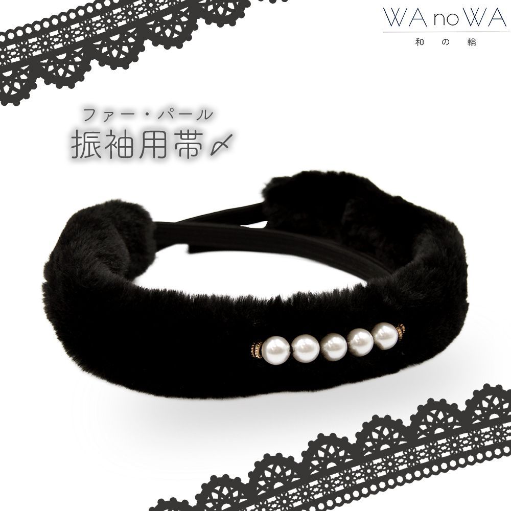 帯締め 帯飾り 帯〆 ファー パール ブラック 成人式 振袖 和装小物 着物 和装 WA-W-22