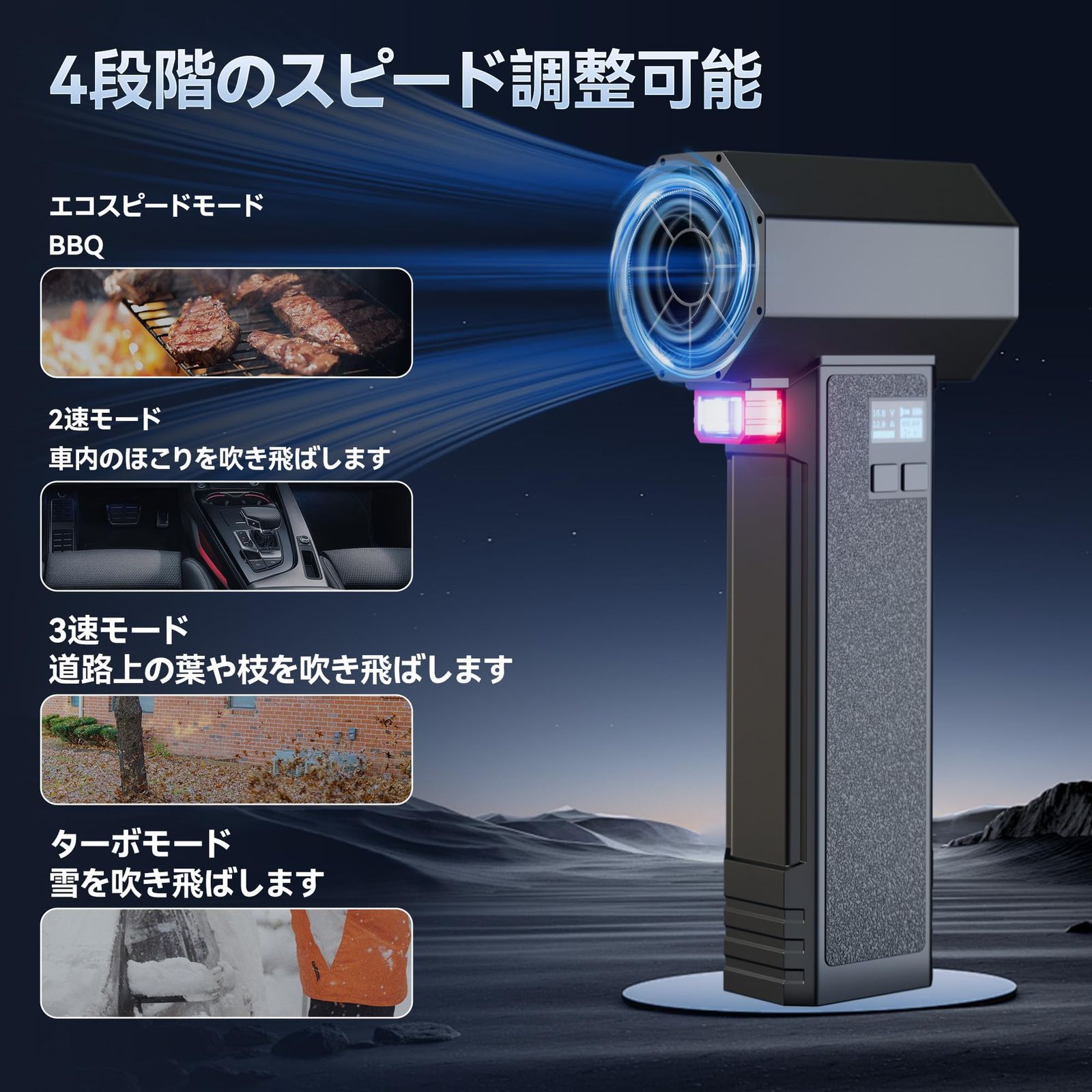GURU ブロワー 強力 洗車 1600 g超強推力 60 m s圧倒的な風速 PSE認定 ターボモード搭載 4段変速 耐久性 大ファンブレードターボブロワーライト付き PC掃除 キーボード 家具 車内 エアコン 洗車用等 プレゼント