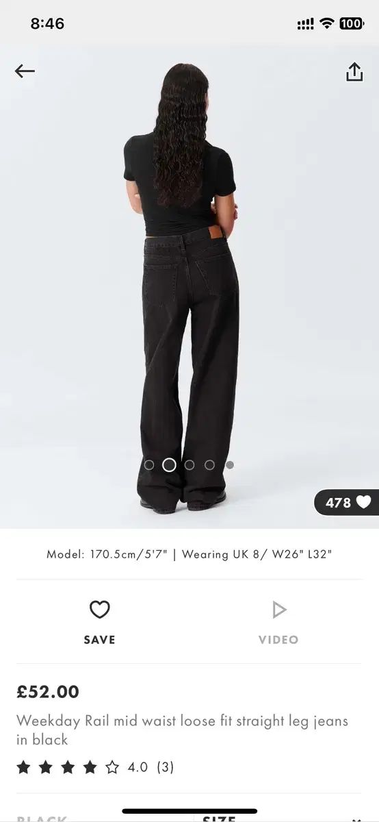 Weekday rail ブラックジーンズ デニム 27 サイズ
