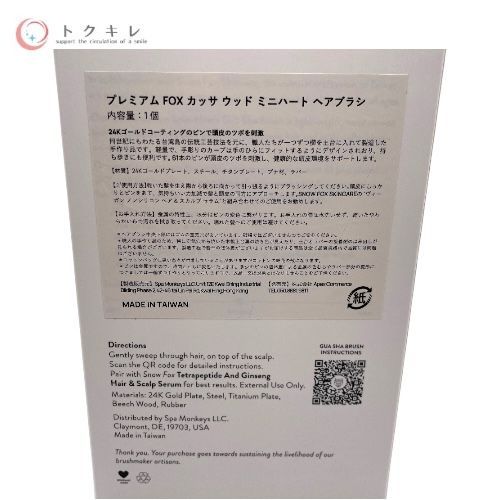 トクキレ SNOW FOX スノーフォックス カッサ ウッド ミニハート ヘアブラシ GUA SHA HAIR-SCALP BRUSH 24 K金メッキピン 頭皮ケア ヘッドスパ ブラシ