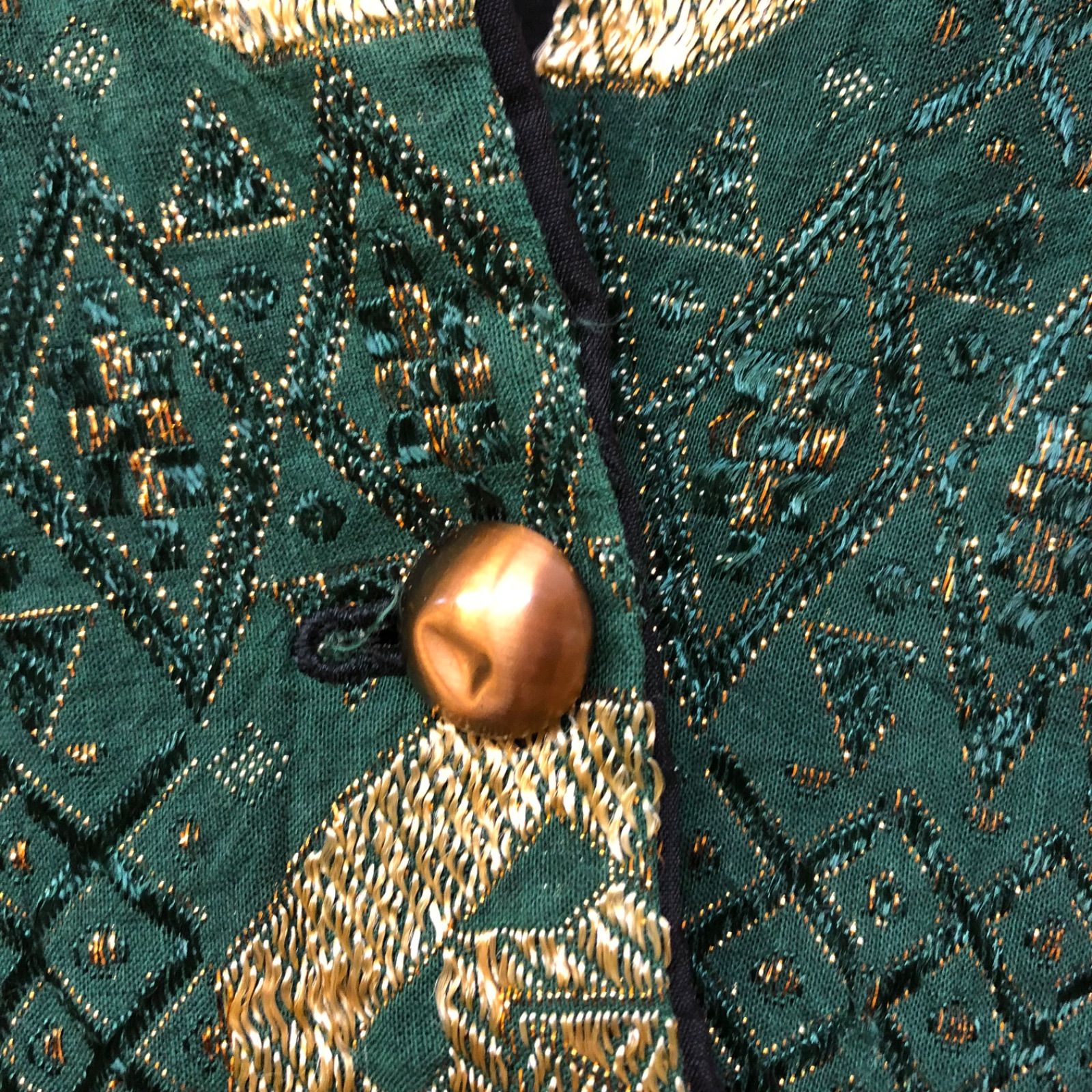 ヴィンテージ ベスト ジレ 豪華刺繍 Vネック グリーン 古着