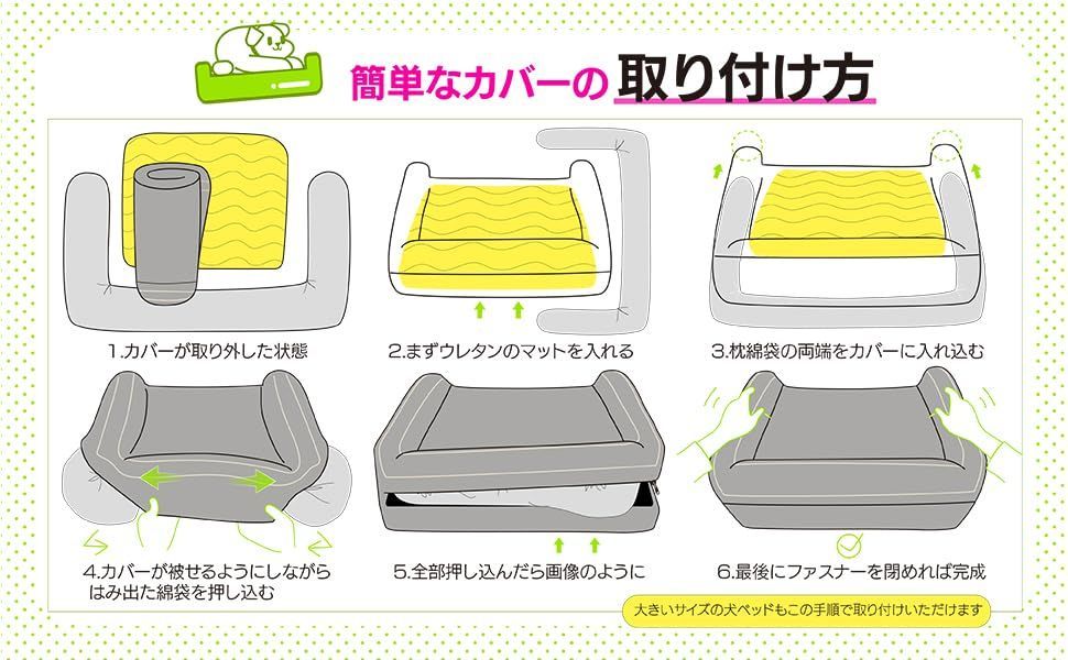 【洗えていつも清潔】犬ベッド全周はファスナー付きで、カバーを取り外せるので、洗濯機に入れて簡単に洗えます。 多少圧縮された状態で発送致しますので、開封後に形を整えてから使ってください。 ご注意:ご購入の際は、商品サイズと設置場所をご確認のうえご注文ください。 また、ウレタン(スポンジ)を洗わないでください。