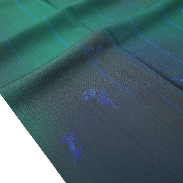 こちらのお品は、深みのある緑や紺紫を基調とした、落ち着きのあるぼかし地が魅力。