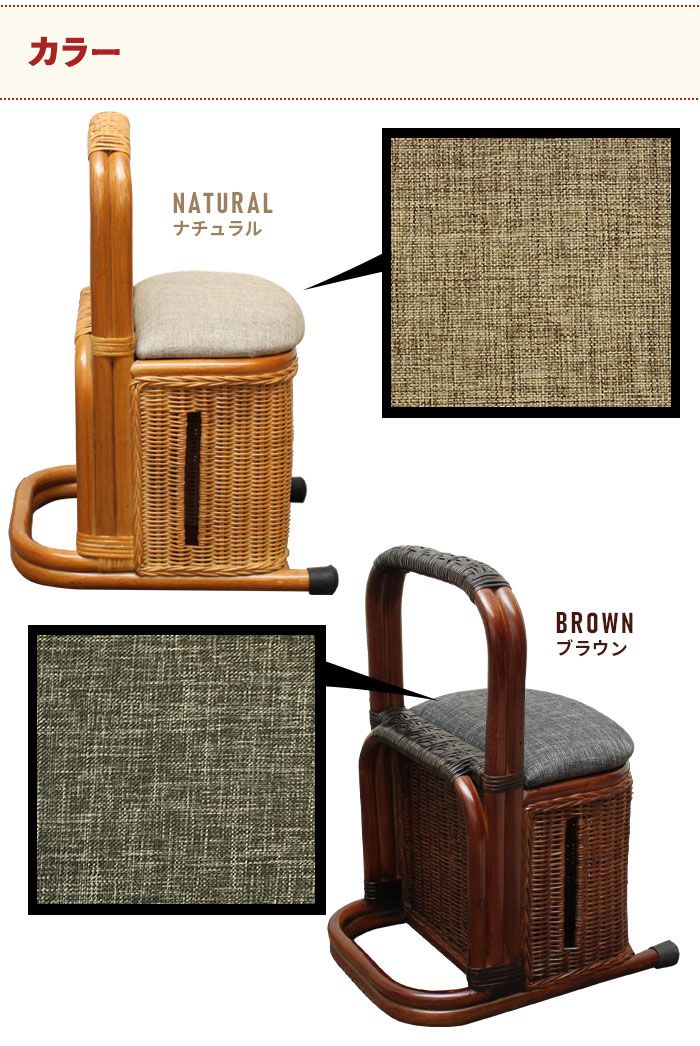 床や椅子からの立ち上がりをサポートするラタン製の補助ステッキです。天然素材の籐(ラタン)を使用しており、強さと柔軟性を兼ね備え、とても軽く扱いやすいのが特徴。使うほどに表面が深みのあるあめ色に変化し、独特の美しさを楽しめます。肘置きとしても使用でき、下部には小物収納スペースを設置。リモコンや眼鏡、新聞、ティッシュボックスを収納でき、実用性抜群です。接地面には滑り止め効果のあるゴム付きで、床や畳を傷つけにくい安心仕様。落ち着いた色合いのデザインで、どんなお部屋にもなじみます。